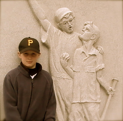 But this week, Grant, my 2nd son, and I went to the Pirate game on Sunday. Two 'free tickets' came to us that morning at swim practice when a fellow basketball playing friend said he wanted to give away his tickets because his wife wasn't feeling up for the game. She was 'under the weather' -- and it did rain.
