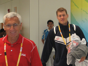 Here he is when we got to meet him after he won the bronze in the Water Cube with his college coach, Jon Urbanckek, also of Ann Arbor, Michigan.